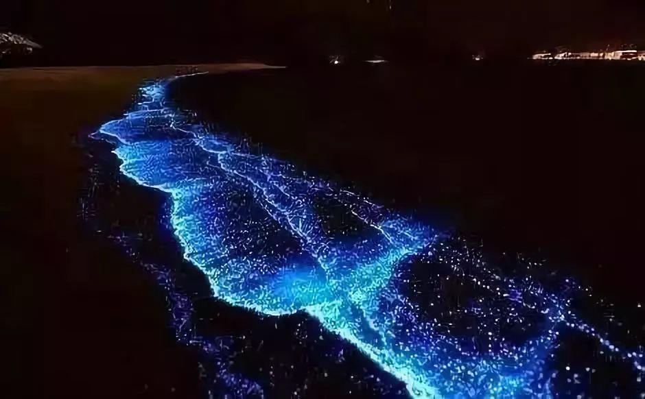 看着这张图,晚上的海水竟然发出耀眼的蓝色,闪闪发光,令人眩目。