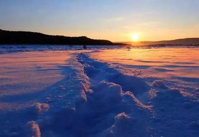 在寒冷冬天,太阳缓慢升起,直至把天空染成橘红色后,此时太阳就会下山,差不多2个小时。