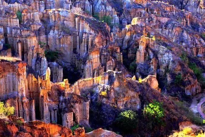 在这里,仿佛进入新世界,土柱身上混有的石英、玛瑙显露后,在太阳的照射下,会放出奇异的光。