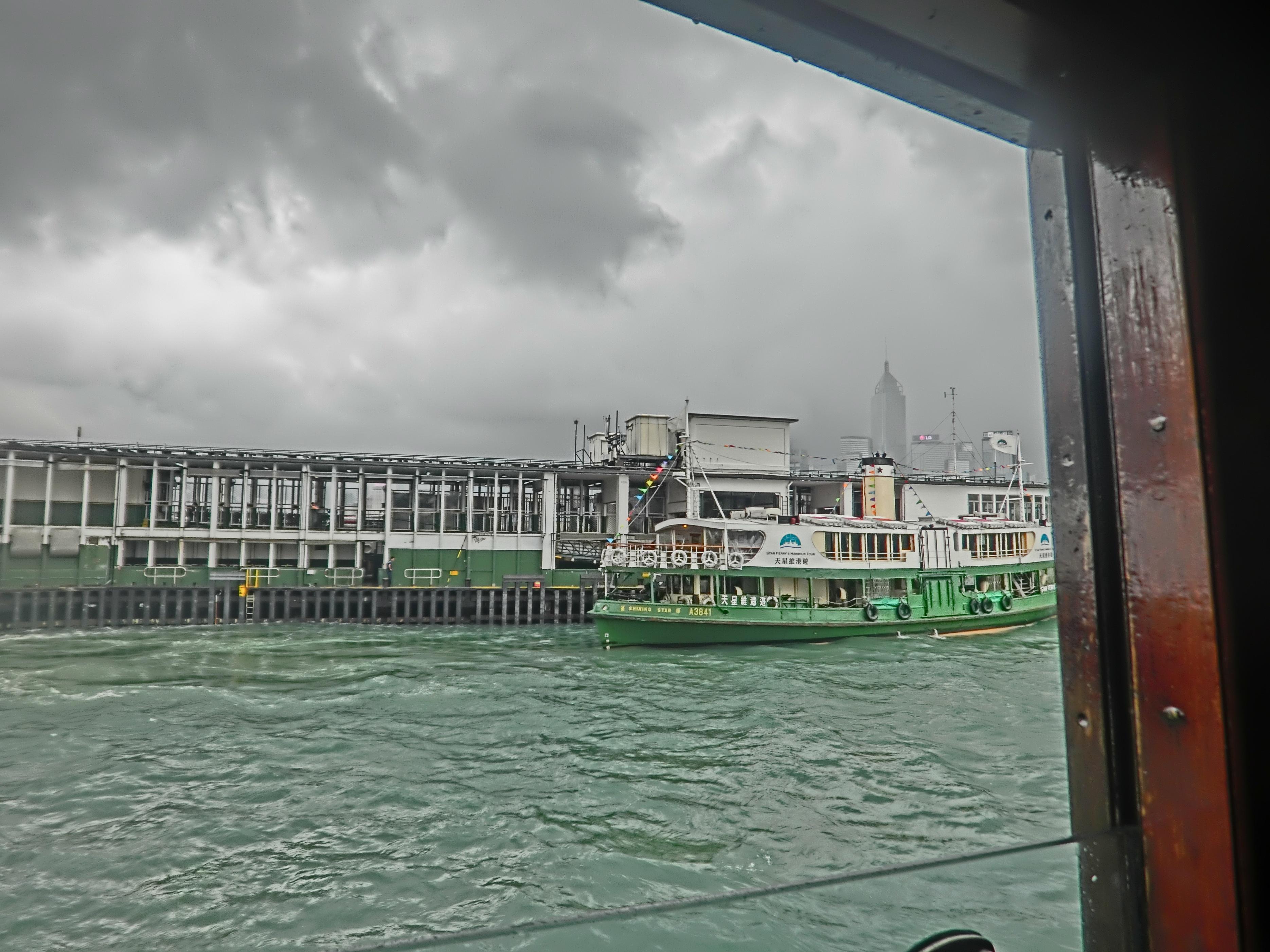 当时我去的时候好巧不巧赶上了阴雨天,风景没那么美丽但依旧兴奋,大白天来维多利亚港主要是为了体验一把这儿的轮渡——2块钱/人的天星小轮,比武汉10块钱/人的普通轮渡的体验感好很多。